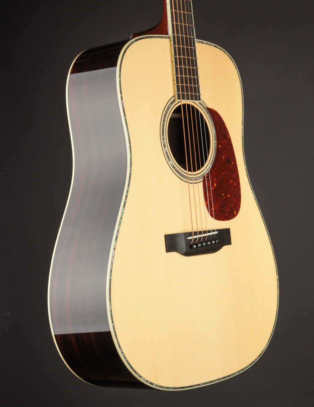 Aesthetically, this is a gorgeous guitar without being over the top. The abalone top border and rosette add visual elegance, while the gold Waverly tuners and peghead binding nicely round things out. This is an heirloom quality instrument built to go the distance and be handed down.