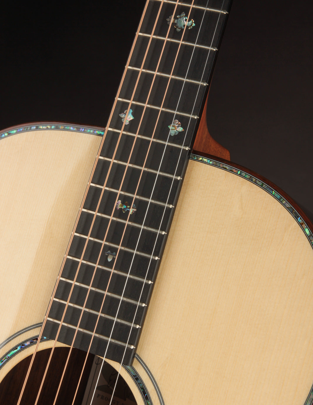 Madagascar Rosewood veneer w/Froggy Bottom logo in abalone