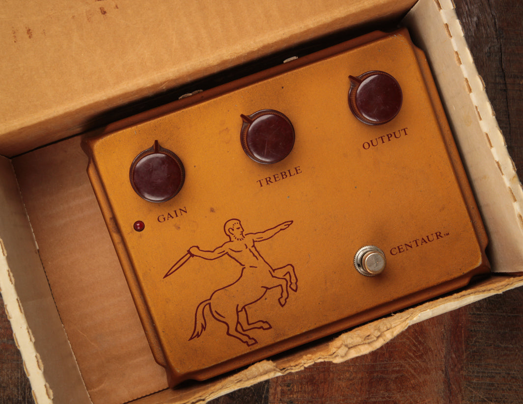 This 1997 Klon Centaur was purchased brand new, direct from Bill Finnegan, in August 1997. It remained with its original owner until now. It represents the second iteration of the fabled "Gold Horsie" Klon, which is really just a slight change in the Centaur graphic.