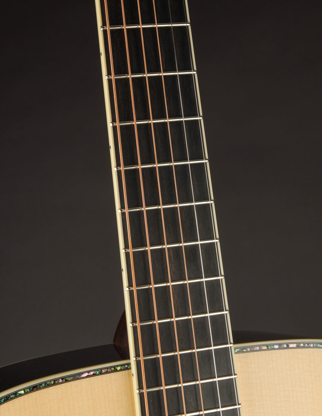Aesthetically, this is a gorgeous guitar without being over the top. The abalone top border and rosette add visual elegance, while the gold Waverly tuners and peghead binding nicely round things out. This is an heirloom quality instrument built to go the distance and be handed down.