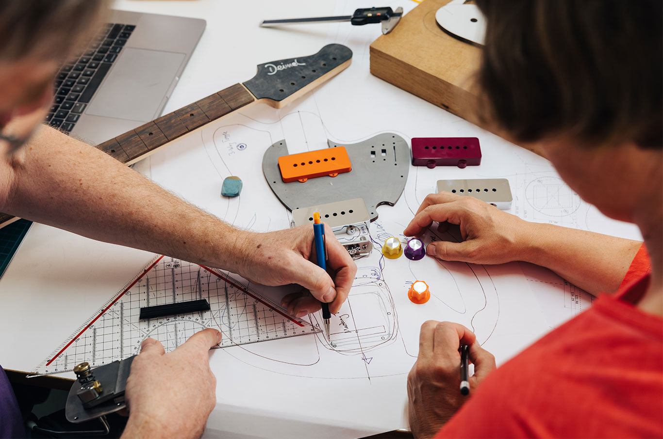 "Together, our approach of handcrafted, well designed guitars in modern pop culture has fully developed. The inspiration of vintage design cues and experimental, open minded features lead to our main objective: We want to give a tool of great appearance, perfect playability, and inspiring possibilities."