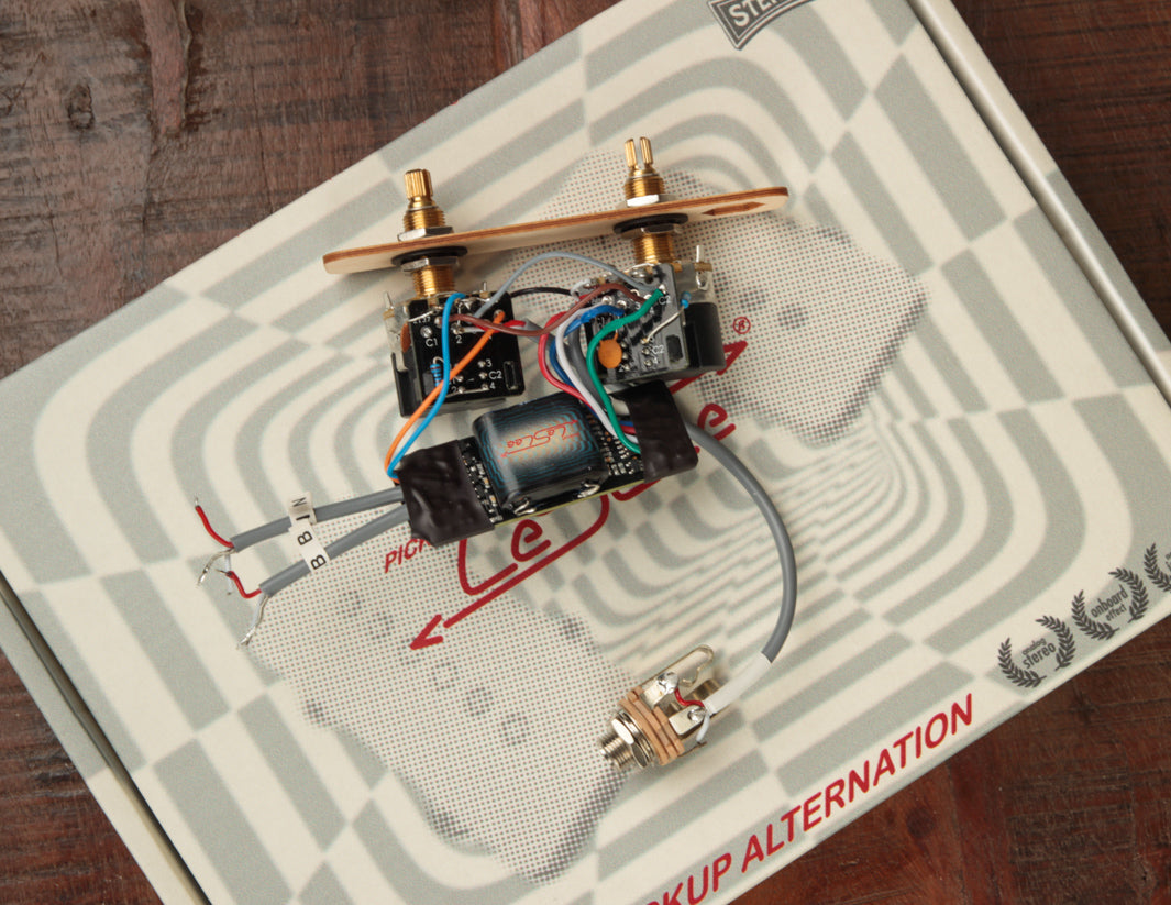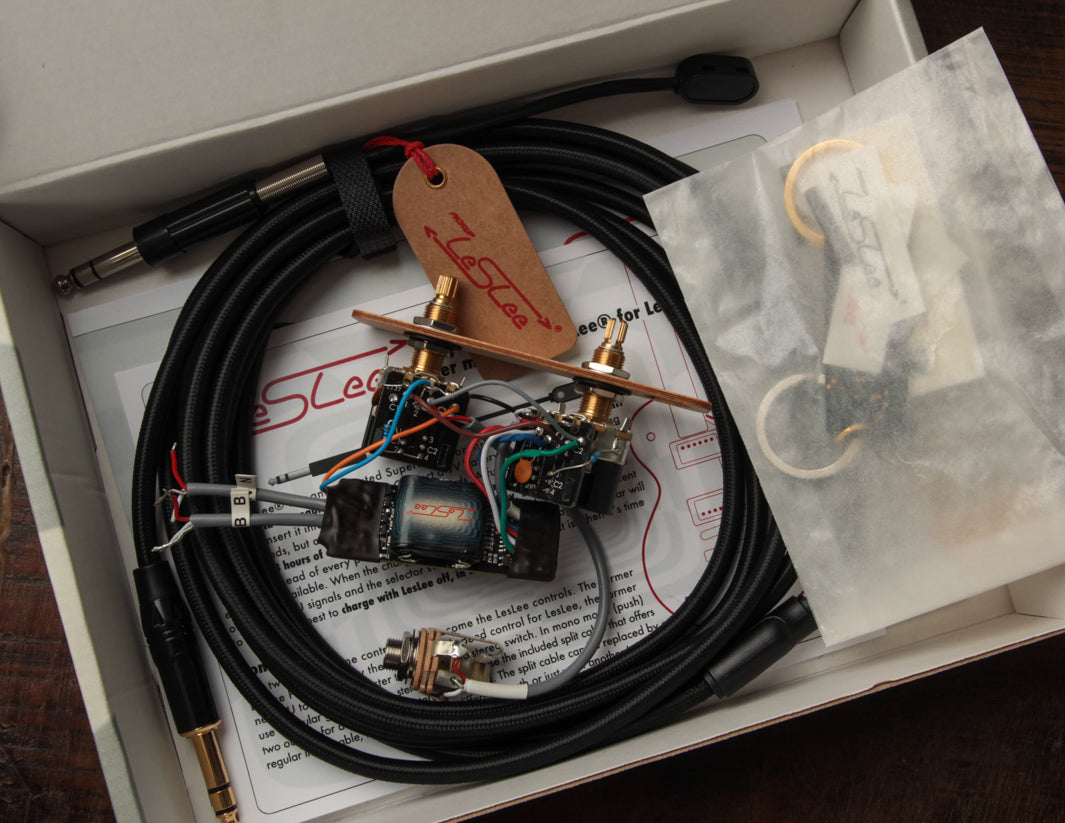 The Pickup LesLee is a cool little piece of analog onboard technology that utilizes your bridge and neck pickups to generate a distinct percussive tremo-vibe sound simply by auto-alternating the pickup signals!